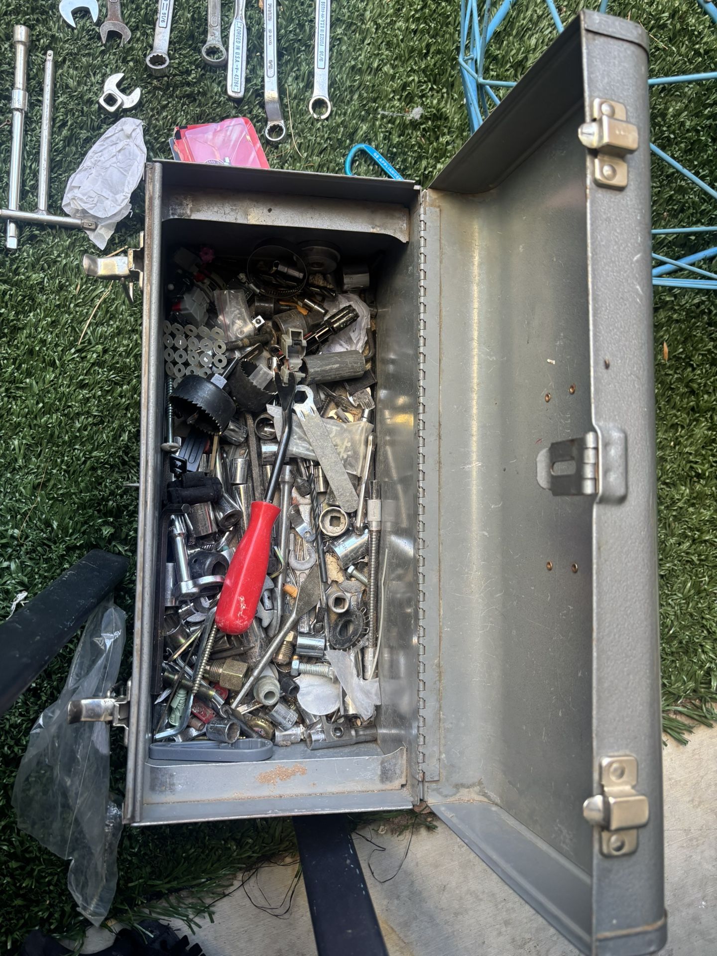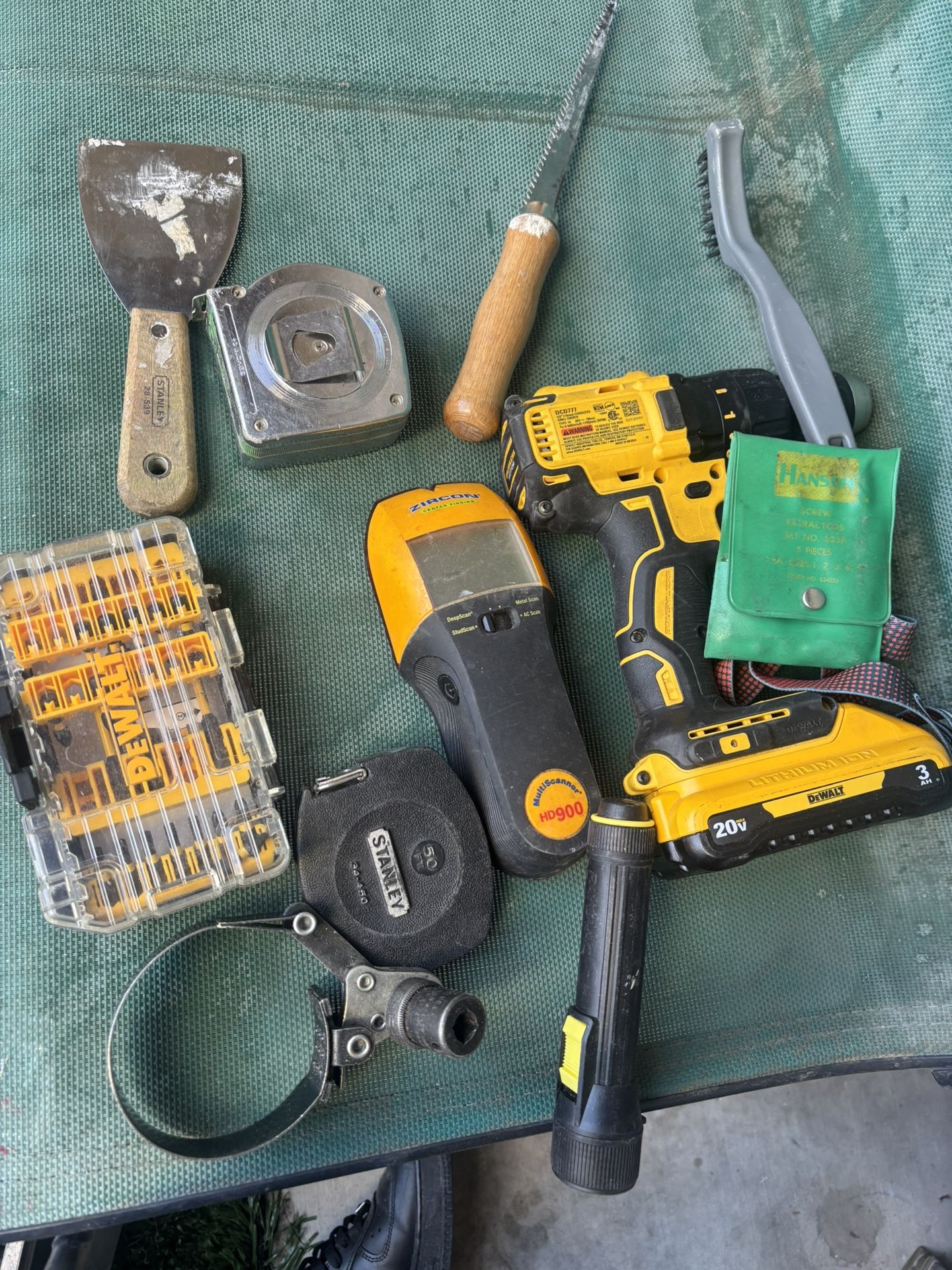 Full of all type off toolsDrills Measuring tape Wrenches Everything included even the tool box