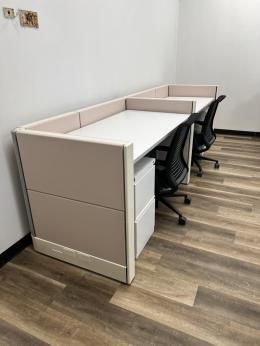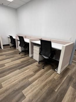 Herman Miller stations that are 60”x30”x38” with height adjustable electric desks. Each station comes with a bbf pedestal: These stations are refurbished with new fabric if your choice and trim color.*Cluster formation $999.00*Straight line formation as pictured $1,199.00-Item # 70906Email [email protected] your floor plan for a quote.