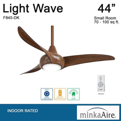 About This Product:Introducing the little brother to our ever-popular Light Wave Fan. The Light Wave by Minka Aire is the next generation of our highly successful, ground-breaking Wave fan. Its energy efficient LED light source integrates light without compromising design. Its dramatically twisting curves of the blades and an etched white lens shade gives you a soft glow that can be fully dimmed with the included hand held remote. Comes in 5 different color finishes complementing your decor needs. The LED Light Wave is a great twist on an established design. New addition to the Light Wave Family of ceiling fans designed by MINKA-AIRE.