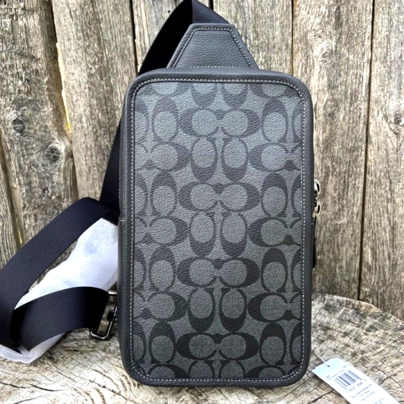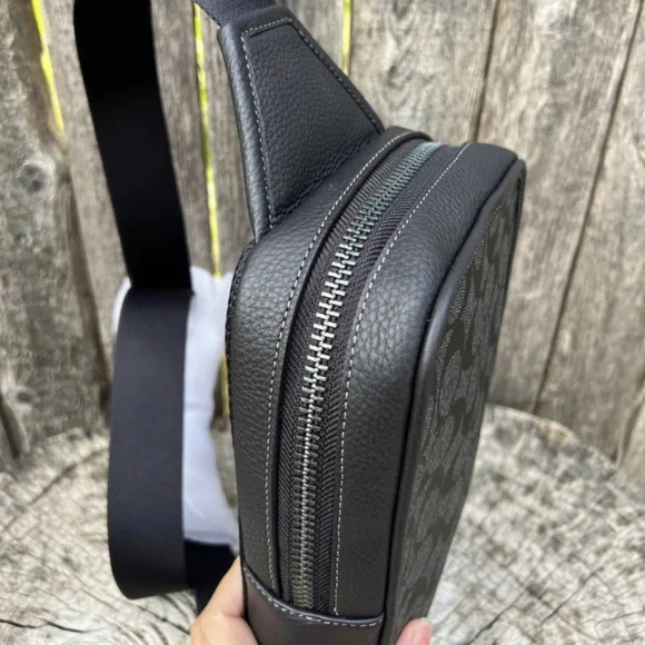 NWT Coach C9867 Sullivan Pack in Signature Canvas & Leather Charcoal BlackStyle NumberC9867MeasurementsLength: 2.25"Height: 6.25"Width: 10.5"MaterialsSignature coated canvas and refined pebble leatherFabric liningStrapAdjustable shoulder strap for crossbody wear (clip left or right)FeaturesInside zip pocketZip closureInside multifunction pocket