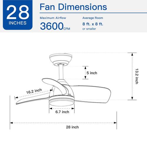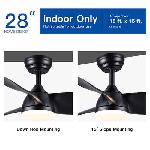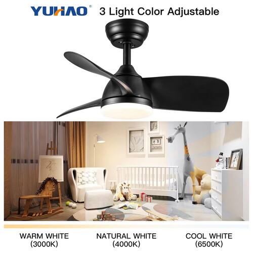 About This Product:The 28 in. YUHAO ceiling fan is designed for small rooms or areas where a little breeze is desirable. These small ceiling fans with lights are perfect for spaces like home offices, hallways and laundry rooms. Energy-efficient LED bulbs provide just the right amount of light while the reversible, 6-speed Whisper Wind motor delivers ultra-powerful air movement with whisper-quiet performance. The integrated 18-Watt LED light kit is dimmable and allows you to choose from 3 different color temperature settings 3000K/4000K/6000K. Convenient operation is at your finger tips with the included remote to control the fan´s speeds and which randomly alternates fan speed to create an organic breeze effect.