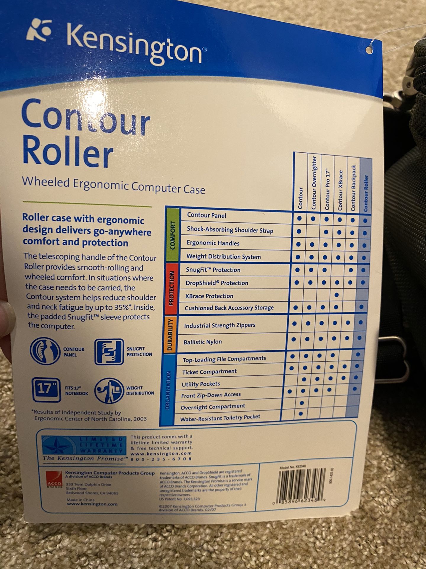 Kensington Contour Rolling Laptop Case Nylon 17-1/2 x 9-1/2 x 13 Black 62348NEW with tags pick up In Rockville