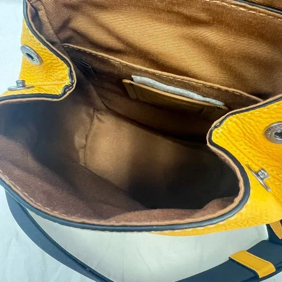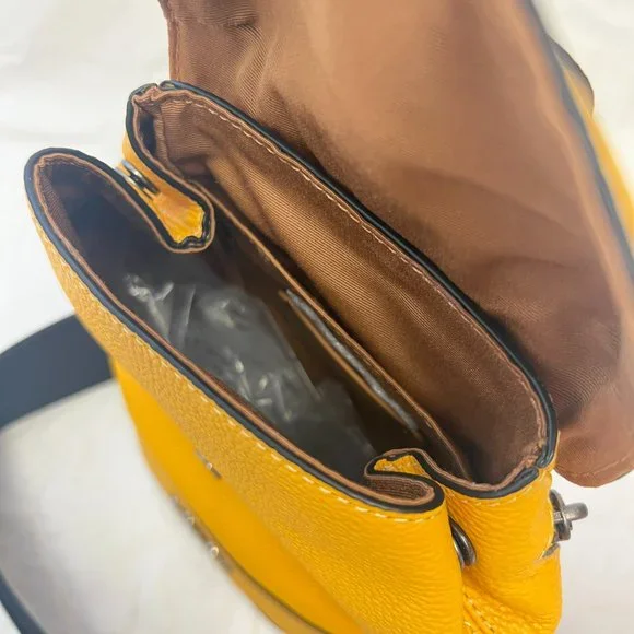 Natural pebble leatherInside multifunction pocketSnap closure, fabric liningTop handle with 2"Outside zip access to interiorAdjustable shoulder strap for crossbody wear (clip left or right)5 3/4" (L) x 8 1/4" (H) x 3 1/2" (W)Style No. CB929
