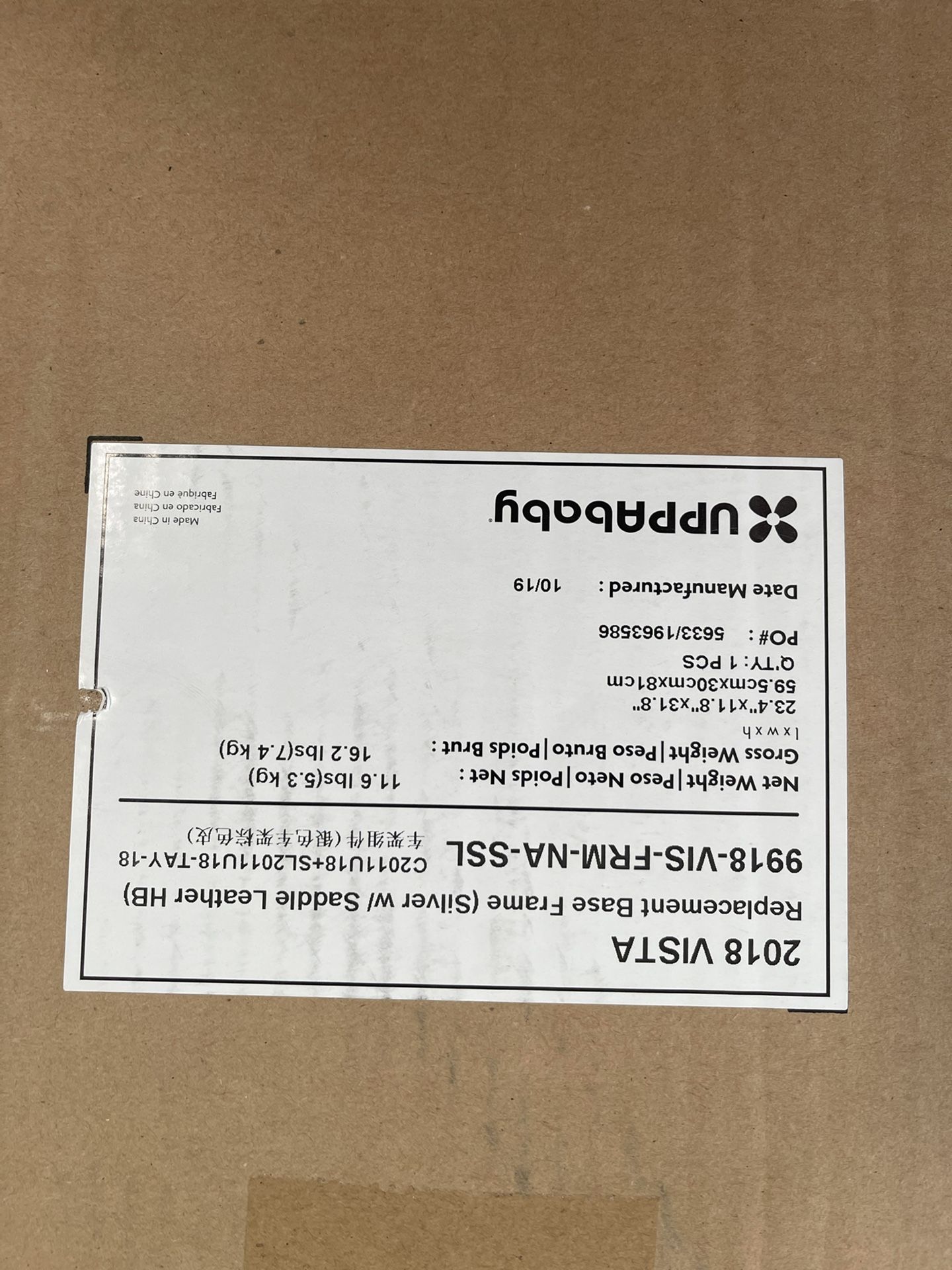 Uppababy Vista FrameRear Wheels BasketRumble Seat All that’s missing is the font wheels- $33.00 each