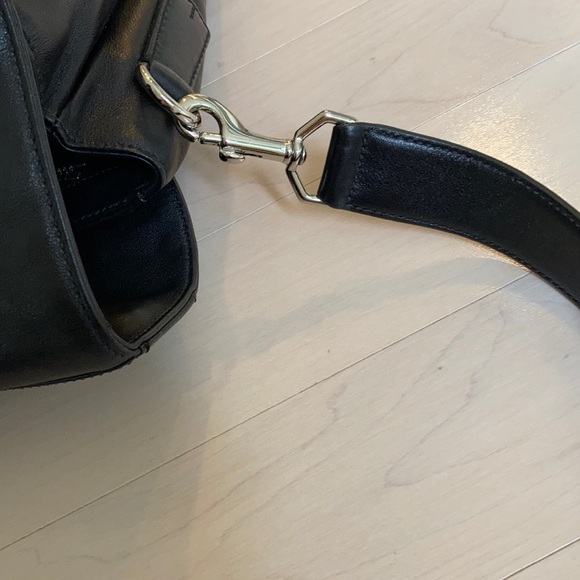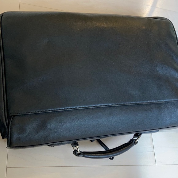 In amazing shape - May have been used once! The shoulder strap has never been used. It is high quality and has all sorts of pockets. Probably best for a man but could be used by a woman. Silver hardware