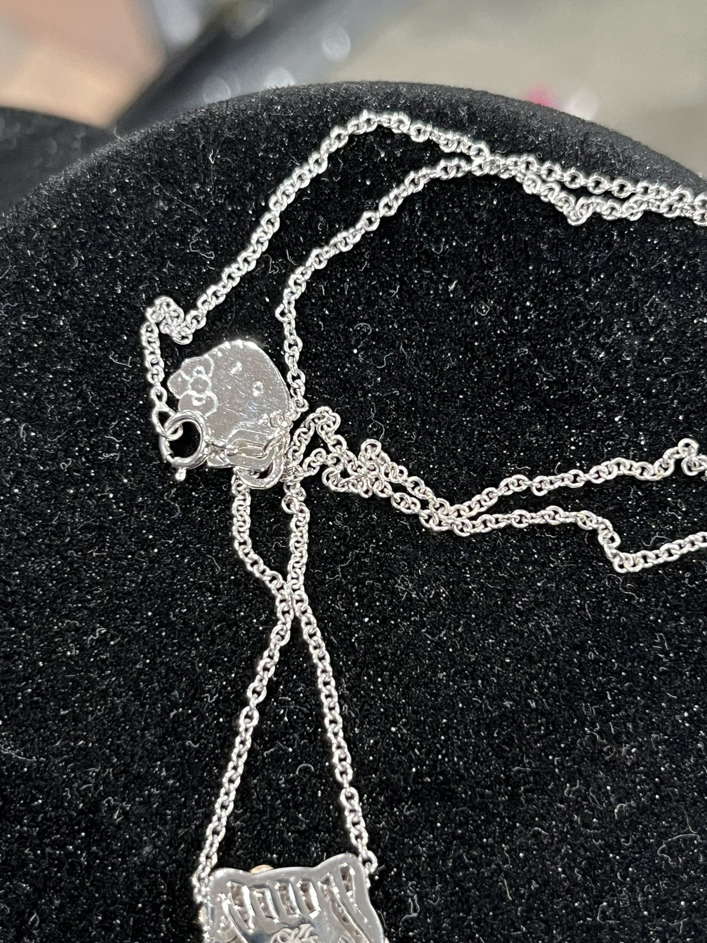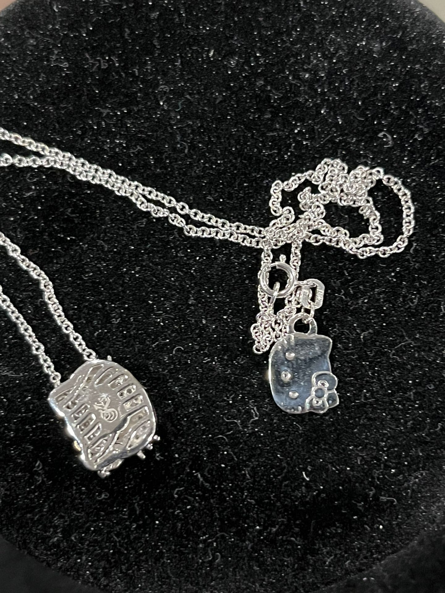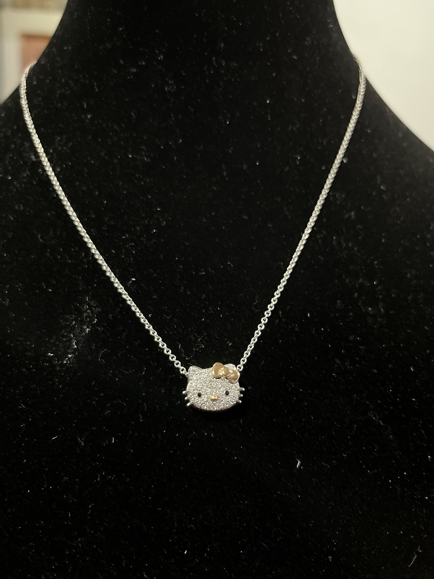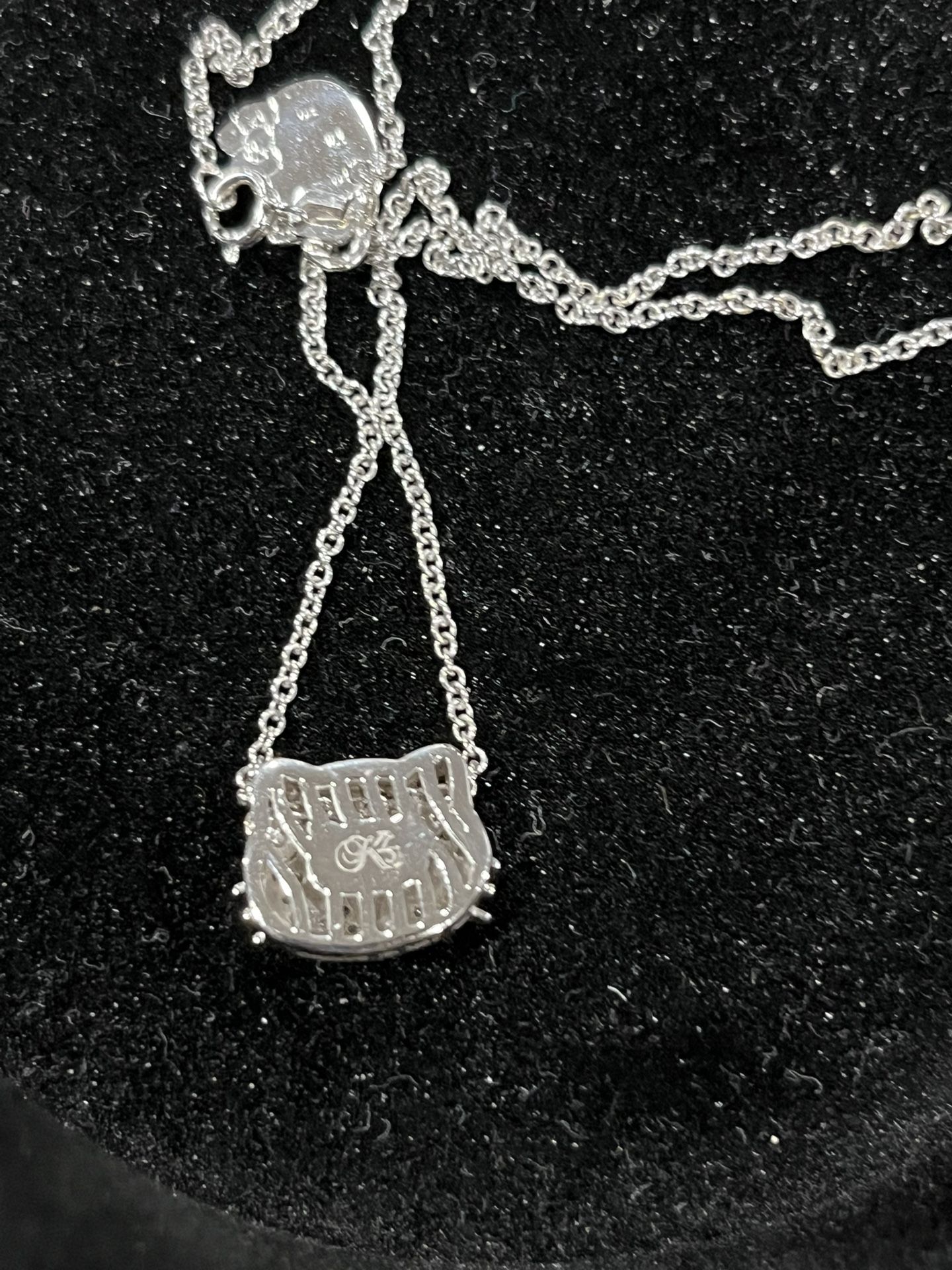 Very rare Vintage Mid 2000s Hello Kitty 18kt white gold / diamond pendant necklace set KLS X Sanrio collab Kimora Lee Simmons designs Limited pieces This necklace set is in excellent condition like new comes in original dust bag 1000% authentic 18k white gold with rose gold bow and diamonds on pendant Chain is adjustable in length and solid 18kt white gold Real 18kt white gold NOT PLATED and genuine diamonds NOT MOSSANAITE or LABCan meet at jeweler to test *this is a vintage jewelry piece from a older Sanrio collection . It is highly collectible and sought after . Not selling as scrap gold so not interested in those offers