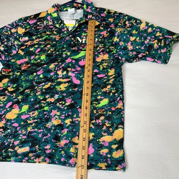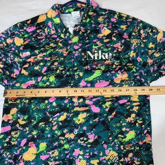 Nike NK Trek Division Dri-Fit Mesh Button-Down Polo Shirt Men´s S NWT MSRP $85With this Nike Trek Division Button-Down Shirt, you´ll get a bright and fun look for any summer occasion. Made with open-celled mesh construction, this Dri-Fit shirt will keep you cool and comfortable all day long. With a versatile all-over print design, it can be dressed up or down to fit any event. Whether you´re hitting the beach or enjoying a day out in the city, this shirt will make sure you´re looking your best.