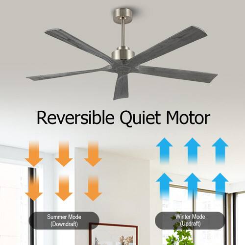 About This Product:The 60 in. indoor ceiling fan adopts 5-pieces of solid wood fan blades. It is made of sturdy construction and durable materials that will not deform during rotation, creating a simple interior home style. This fan features 2-way rotation to satisfy your different needs all year. The fan´s 6-speeds can be controlled by the included remote.