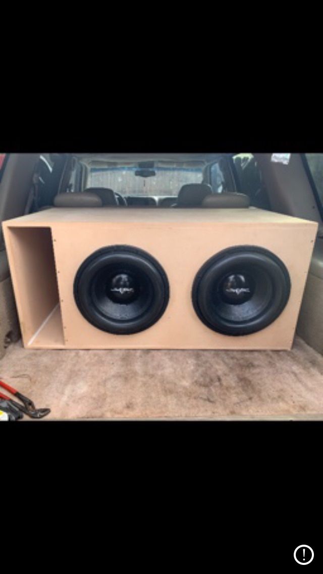 Speaker box postings...All boxes are built to subwoofers manufactures specs for best possible output. Al boxes are built with 3/4 mdf glue and screws. I can not build a box for every vehicle, some are tight on space and others are far to difficult to build without having the vehicle here while building the box. All my boxes will be built without carpet, raw wood is what u get. For quote contact me with what subwoofers and vehicle you have.