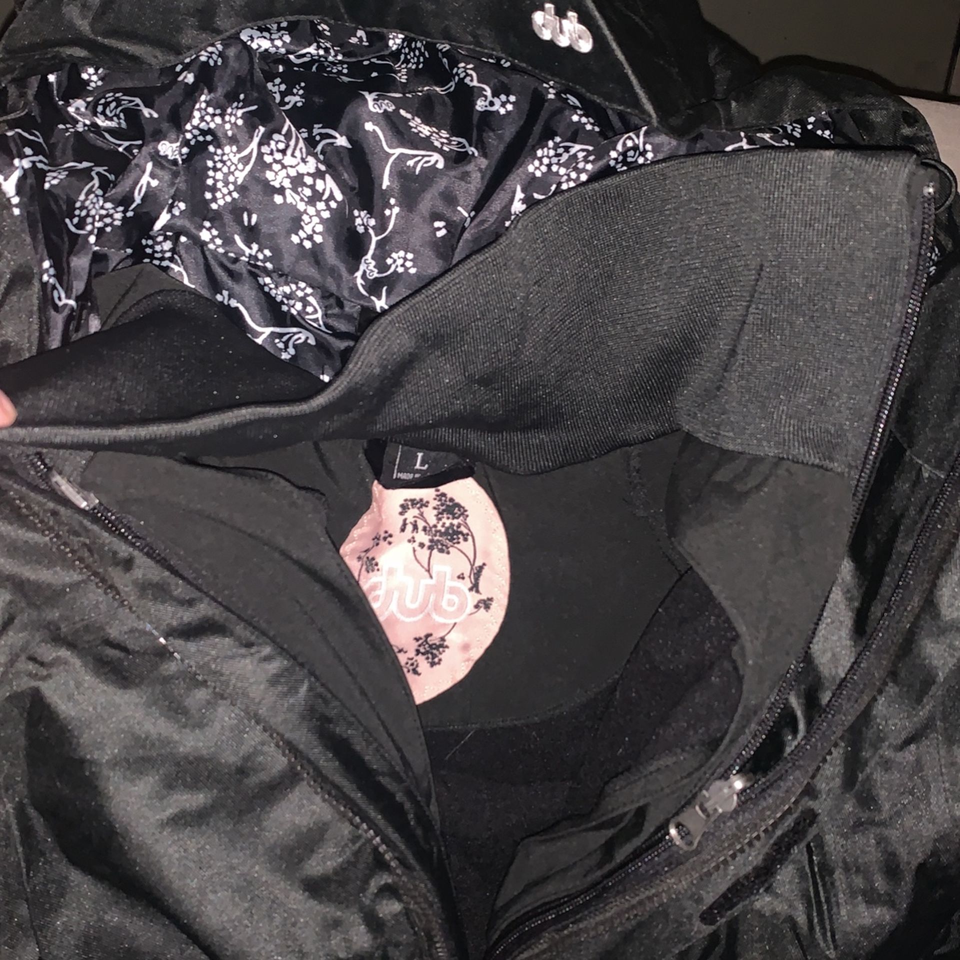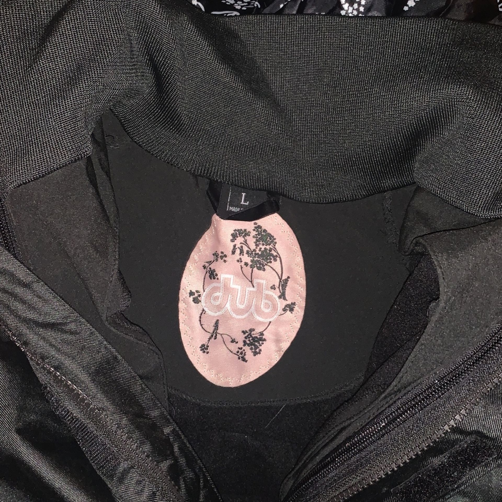 Awesome Brand New $450 Rare Find Dub Jacket Within A Jacket Women’s Large. So you can unzip the inner jacket and wear either or both depending on the weather ! It’s super high quality vented zipper arms DUB embroidered and almost impossible to find this style anymore . Last one