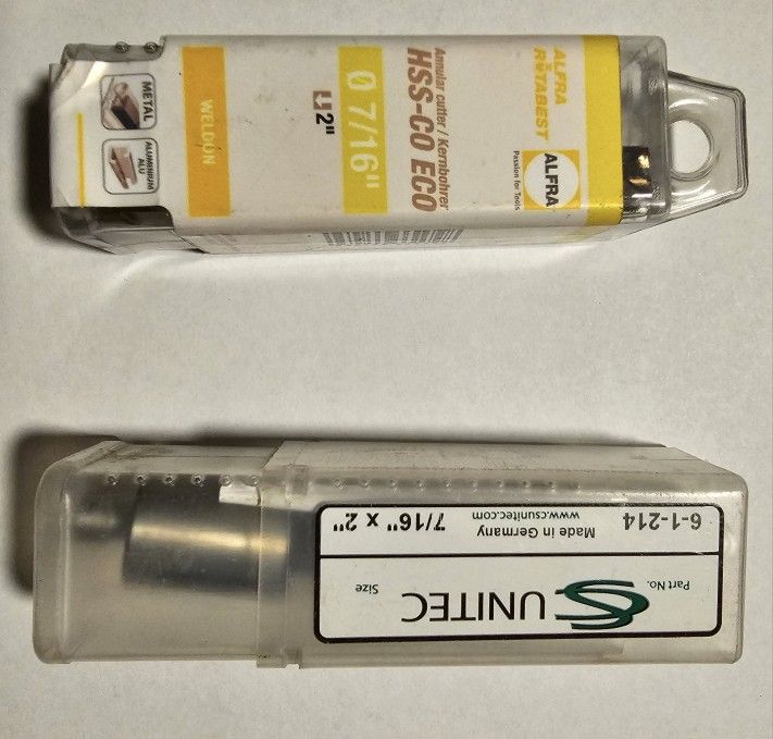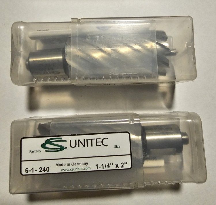 CS Unitec 6-1-232 1" diameter - Unibroach™ Annular Cutters - HSS Steel (6-Series) - 2" Depth - Includes a pilot pin. For use with CS Unitec Magnetic Drills (2)CS Unitec 6-1-218 9/16" diameter - Unibroach™ Annular Cutters - HSS Steel (6-Series) - 2" Depth - Includes a pilot pin. For use with CS Unitec Magnetic Drills (2)CS Unitec 6-1-240 1-1/4" diameter - Unibroach™ Annular Cutters - HSS Steel (6-Series) - 2" Depth - Includes a pilot pin. For use with CS Unitec Magnetic Drills (2)CS Unitec 6-1-220 5/8" diameter - Unibroach™ Annular Cutters - HSS Steel (6-Series) - 2" Depth - Includes a pilot pin. For use with CS Unitec Magnetic Drills (1)CS Unitec 6-1-222 11/16" diameter - Unibroach™ Annular Cutters - HSS Steel (6-Series) - 2" Depth - Includes a pilot pin. For use with CS Unitec Magnetic Drills (1)CS Unitec 6-1-214 7/16" diameter - Unibroach™ Annular Cutters - HSS Steel (6-Series) - 2" Depth - Includes a pilot pin. For use with CS Unitec Magnetic Drills (1)ALFRA RotaBest 1(contact info removed)50-S HSS-CO ANNULAR CUTTER, 7/16" DIA x 2" DOC SKU:1(contact info removed)50-SMPN:1(contact info removed)50-S (1)SLUGGER BY FEIN Annular Cutter: 1 3/16 in Cutter Dia, 2 in Max Cutting Dp, Bright (Uncoated), Steel Mfr. Model (contact info removed)2 (discontinued) (1)SLUGGER BY FEIN Annular Cutter: 1 11/16 in Cutter Dia, 2 in Max Cutting Dp, Bright (Uncoated)Item 20YP73Mfr. Model (contact info removed)2 (discontinued) (1)Slugger 1/2" x 2" Depth Annular Cutter No Pin No box or case (2)CS Unitec 6-1-224 3/4" diameter - Unibroach™ Annular Cutters - HSS Steel (6-Series) - 2" Depth - Includes a pilot pin. For use with CS Unitec Magnetic Drills(1)
