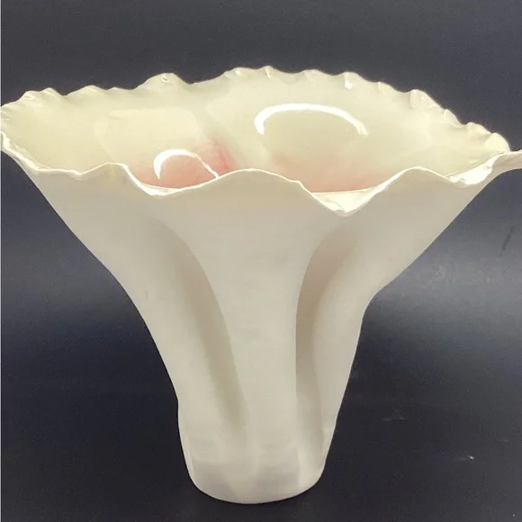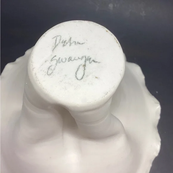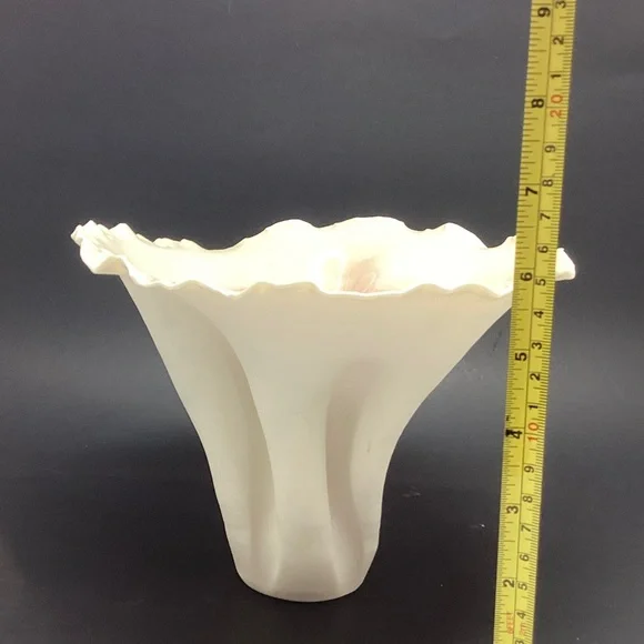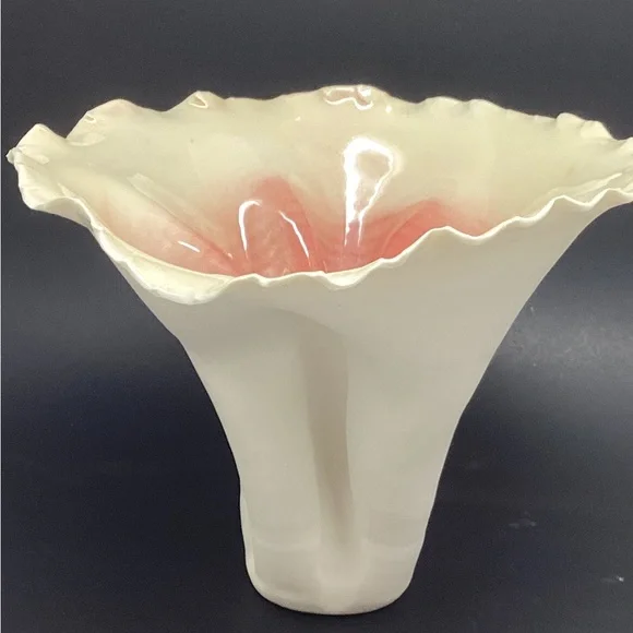 Debra Swauger/ Steidel Sculpture Vase Modern Art Pottery Twist, Pinched Bowl / Vase in Seashell Form, Signed Debra Swauger. This is a unique and beautiful piece of art pottery sculpture/vase by retired Virginia studio artist Debra Swauger-Steidel. It has the appearance of sealife / a seashell and has a textured exterior. The outside is unglazed bisque. The inside is smooth glazed softly pinkish colored porcelain. This piece is signed Debra Swauger, so it was made in her earlier days as a potter, before she was married and started using the name Steidel probably in the 90s. Height: 6”. Width at Top, rim to rim: 7.5”General Information:• Please view all pictures to assess condition as they are part of the description and to see measurements• All photographs are my own and are of the actual product you will receive. Feel free to request more photos if needed. • All of our items are wrapped, packed and shipped with care.• Stored in a clean, smoke-free home.