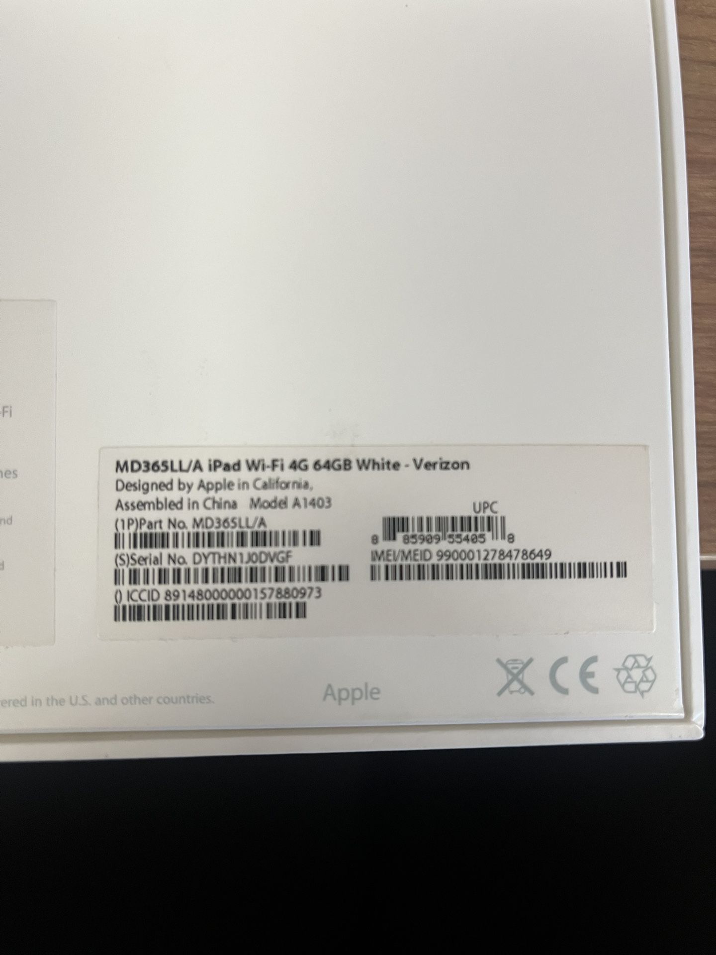 MD365LL/A iPad. 4G. 64GB. Brand new, still wrapped. Only have 1 left. Color - White.