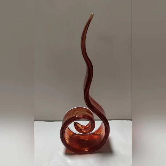 Add a touch of elegance to your home with this stunning swirl glass sculpture. Featuring vibrant red and orange hues, this piece is perfect for any art lover.12in tall
