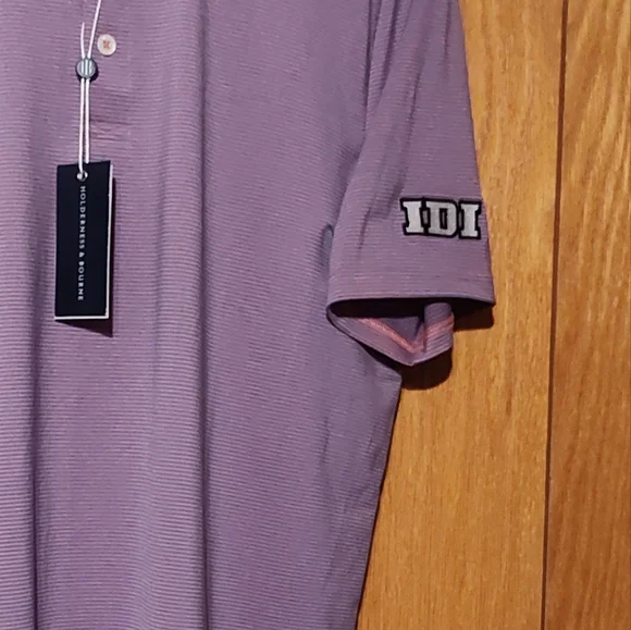 Holderness & Bourne The Perkins Nantucket & Sankaty Golf Polo Shirt Men´s Medium NWTHas IDI on left sleeve. See Pictures This Holderness & Bourne polo shirt is part of "The Perkins" collection, featuring a striped design in multicolor. It is a men´s size M with a spread collar and button closure. Made of polyester and elastane knit fabric, it offers easy care, stretch, and breathability. Ideal for travel, activewear, or casual wear, this tailored fit polo is perfect for golfing in summer, fall, or spring with a designer, preppy look.Elevate your style with this classic purple polo shirt. Perfect for any occasion.