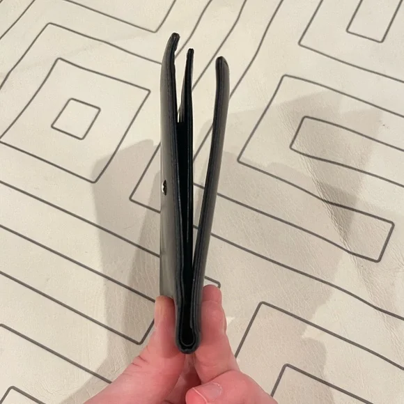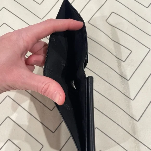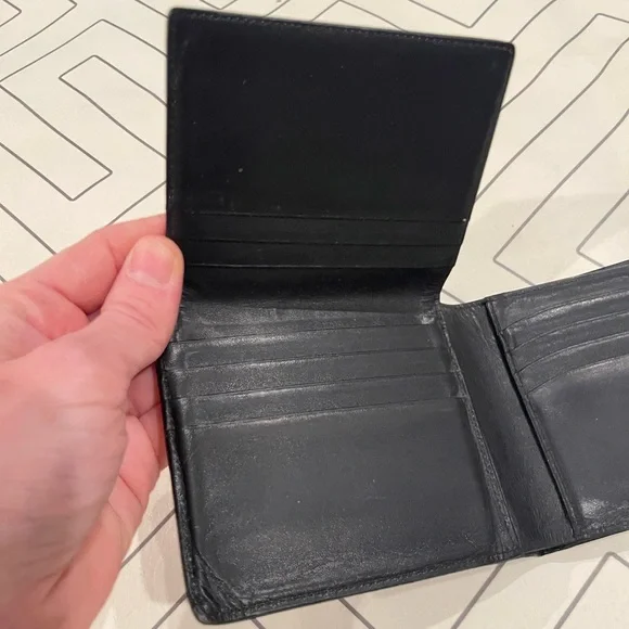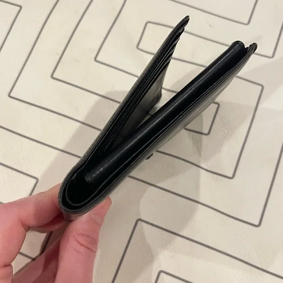Single fold leather wallet. Black buttery soft. Numerous card slots and bill pocket. Good used condition with very minor wear. No trades. U-84