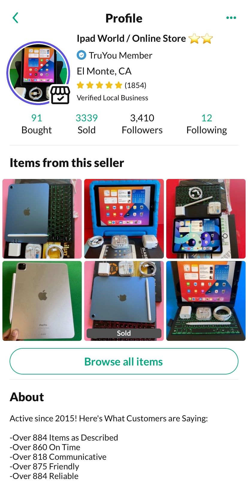 Apple IPad 7th generation (2019 Model) Excellent condition No any kind of lockNo Icloud/password all cleanFactory reset Ready for new user 10.2” Retina Display Touch ID / Fingerprint 2 HD cameras front & BackSiri, Facetime, GPS, calendar, app store, etc. pre installed. Long Battery life Lightening cable port ( Latest IOS 17 updated)Youtube, Netflix , prime video, Hulu, HBO, pub G all supported *Apple pencil & keyboard supported (not included) Good for gifts (birthday/christmas) school work, business work, home work, entertainment etc. Comes withFast Charging cable (type C to lighting) Fast Charging adapter 20w (Type C) New headphone New stylus pen (not apple) works good New Hard Bluetooth keyboard case + colorful lights up feature $229 firm firm (128GB $299) No trade (pick up only) Serious buyer with immediate pick up onlyNo holding first come first serve Low ballers will be ignored Pick up El Monte (This is the WiFi only model / WiFi + cellular $279)