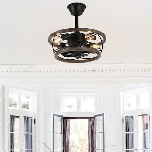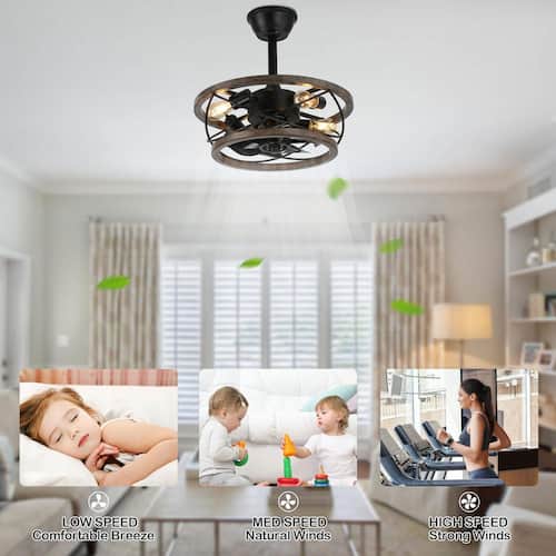 About This Product:Introducing the Gina 18 in. Indoor Weathered Wood Farmhouse Ceiling Fan with Lights, a charming and rustic addition to your home. This ceiling fan features a weathered wood finish and a caged light design, perfect for adding a touch of farmhouse elegance to any room. With 3-speed settings and a quiet reversible motor, it ensures optimal airflow and comfort throughout the year. The fan can be controlled via the included remote for your convenience. It comes with 4 in. and 8 in. downrods, making it adaptable to various ceiling heights. Enhance your living space with the Gina ceiling fan, combining rustic aesthetics with modern functionality.
