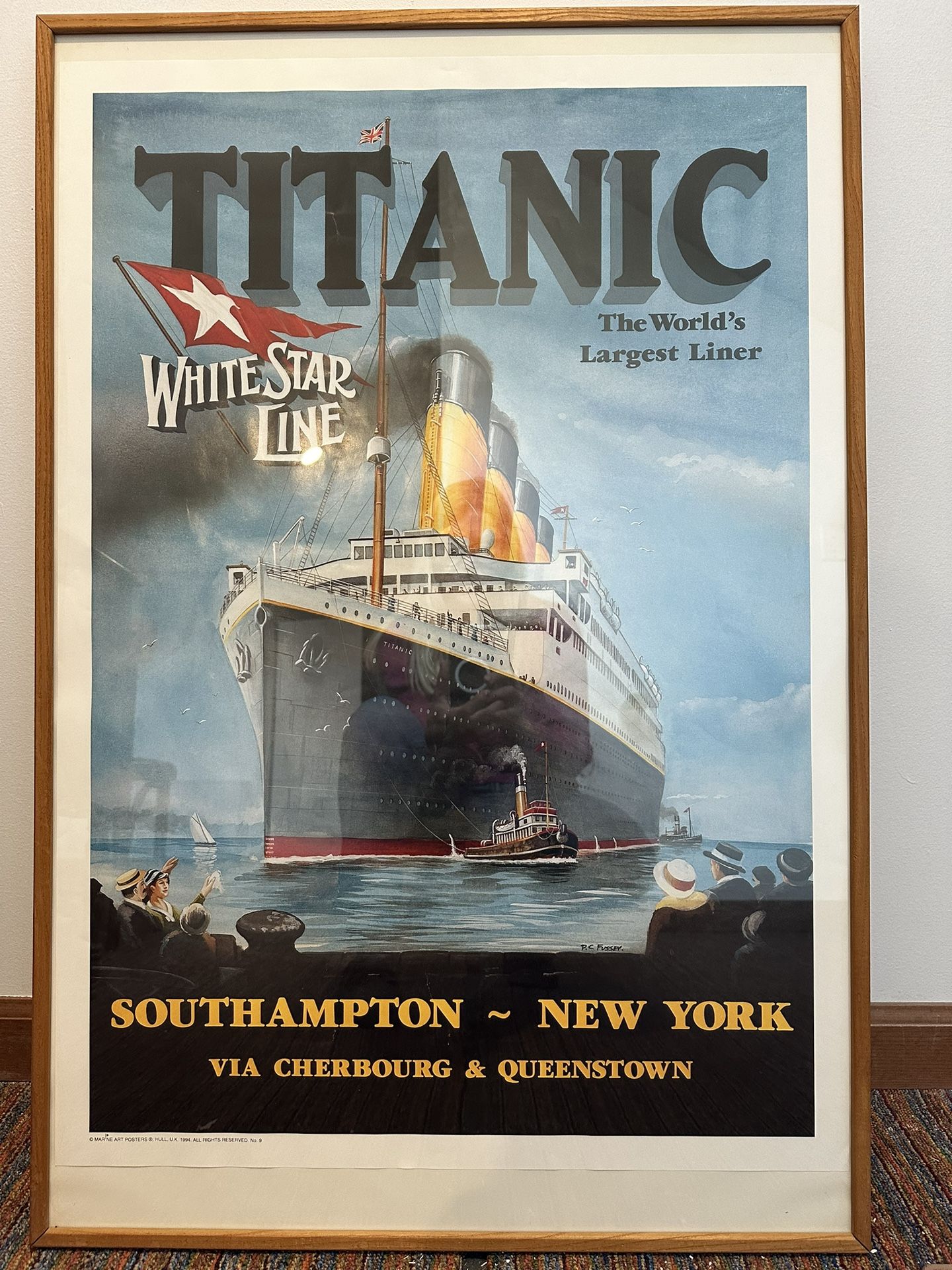 Titanic vintage advertisement poster. Contemporary wooden frame, ready to hang. Approx. 24.5” W x 36.5” H