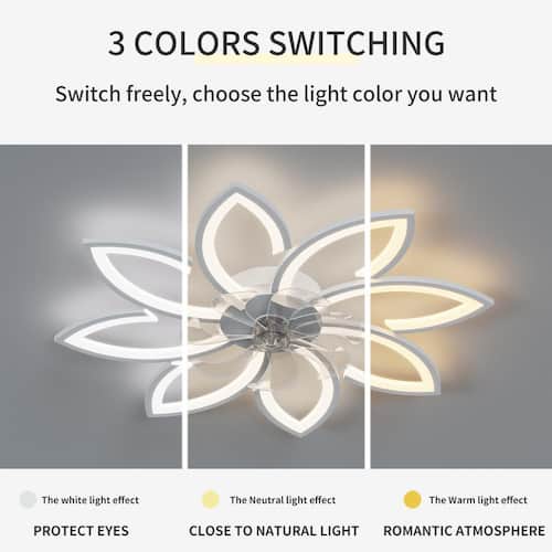 About This Product:The ceiling fan lights has a reverse function, 6 wind speeds, 1-hour/2-hour/4-hour timing and all the functions can be operated by the hand-held remote or APP. The ceiling fan lights can be switched between white light 6000K, neutral light 4500K and warm light 3000K through the remote control. The ceiling fan with DC reversible motor allows you to switch the air circulation mode from downward to upward in different seasons.