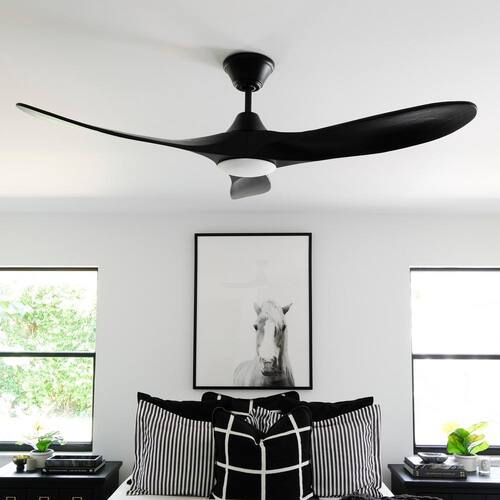 About This Product:The Maverick 52 LED in Matte Black w Matte Black Blades features an 85.0 X 28.0 6-speed motor with a Thirteen-degree blade pitch. The famous Maverick ceiling fan is now available with an integrated LED light. This advanced LED technology is carefully designed and selected to have the highest quality LED chipsets for superior performance and reliability. With a sleek modern silhouette, a DC motor, and super energy efficiency, the Maverick LED ceiling fan features softly rounded blades and elegantly simple housing. Maverick LED is available in 52, 60, and 70-inch blade sweep and a 3-blade design that delivers a distinct profile and incredible airflow for living rooms, great rooms, or outdoor covered areas. It includes a hand-held remote with six speeds and reverses. All versions feature beautiful hand-carved balsa wood blades. ENERGY STAR qualified. Maverick fans are damp-rated. A