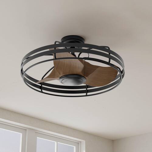 About This Product:Introduce a rustic industrial style to your home with Bastrop, whose updated vintage styling comes from its wood tone and metal cage frame construction. Curved fan blades finished in aged oak feature an interesting bend that heightens the fan´s industrial aesthetic. A damp location rating makes Bastrop ideal for both indoor and covered outdoor use. An included remote control operates the fan.
