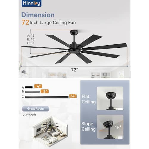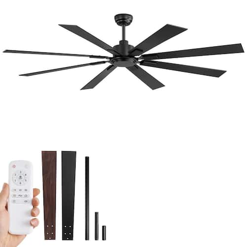 About This Product:This 8-blade ceiling fan comes in 2 finishes, black and walnut, and with the purchase of a single fan, you can easily have both styles, perfectly combining modern design aesthetics and practical functionality. The unique feature is the flexible Downrod Mount and Angled Mount, which easily adapt to various home layouts. The attached boom is available in 3 lengths (4, 8, 24 in.) to ensure perfect integration into different space requirements. Equipped with advanced direct current (DC) motor technology, the ceiling fan not only achieves excellent energy saving and efficient performance, but also runs at an amazing 35dB ultra-low noise, bringing unprecedented peace and comfort to your home environment. It has excellent reversible function, cooling in summer and circulating air in winter, suitable for all seasons.6-speed, 3-speed timing, as you like to control the wind. The ease of operation is equally impressive, and all functions can be easily controlled by the equipped high-quality remote control. The remote control also comes with a practical bracket, which can be firmly fixed in the position you specify, which is easy to access at any time, and effectively reduces the trouble of remote control loss, so that every operation becomes more satisfactory.