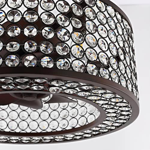 About This Product:This 8-blade crystal ceiling fan is the perfect combination of modernity and elegance. Its bronze/chrome/gold finish with crystal accents bring a stylish theme to your space. Beautiful yet functional, it can be used as a semi-flush mount lighting fixture as well as a chandelier ceiling fan. Just enjoy the cool breeze with this striking bladeless ceiling fan.