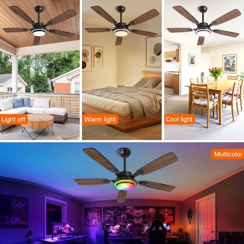 About This Product:Elevate your home comfort with the BICIK 48-Inch Indoor/Outdoor Ceiling Fan in elegant sand nickel. Designed for performance and style, this fan features five dual-finish blades-black on one side and walnut on the other-to match a variety of decor styles. It includes 6 adjustable fan speeds, reversible rotation for year-round use, and stepless dimming with tunable color temperature to set the perfect ambiance. An integrated RGB ambient light ring adds a colorful accent, while the remote and APP control make operation seamless. With two included downrods, you can install it in rooms with different ceiling heights, and the fan´s memory function ensures your favorite settings are always saved.