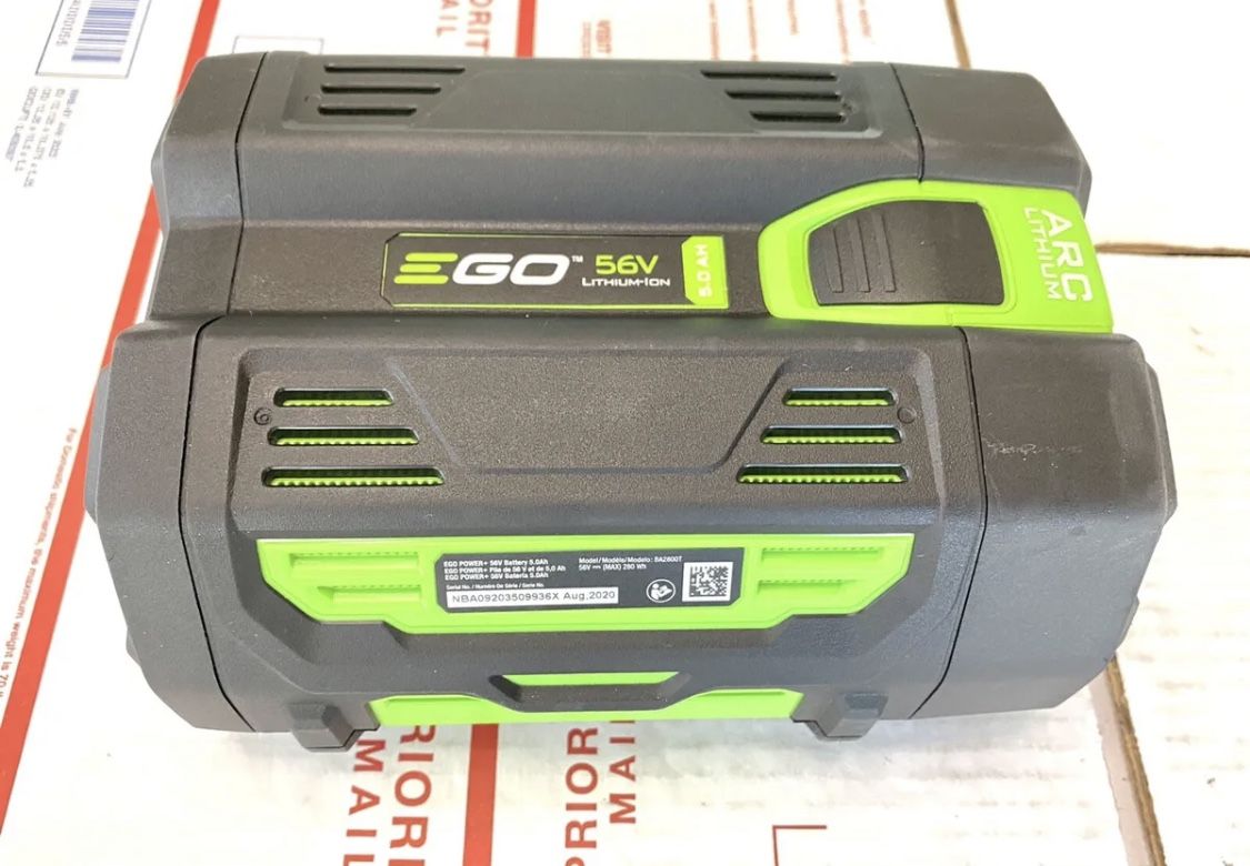EGO Power+ 56V Lithium-ion battery. BA2800T 5.0Ah. Tested, works excellent, fully charged. Buy it now, no waiting for bidding battle. Any question please asks before purchasing.What you see here will be what you get, pictures are actual items. Please check these pictures for details.