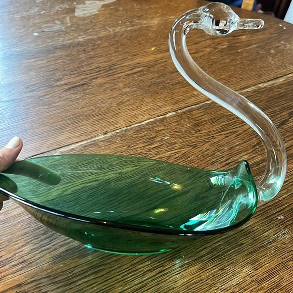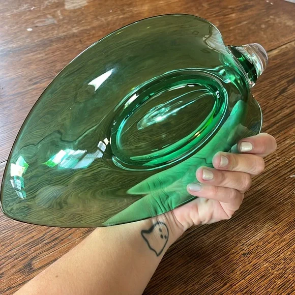 11.5” long10” tall7” wideGreat condition Green and clear glass