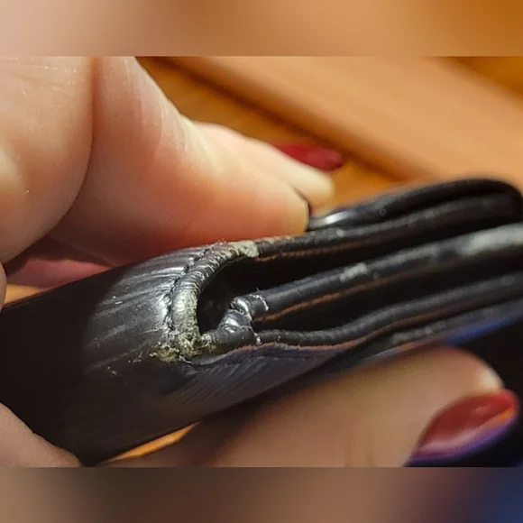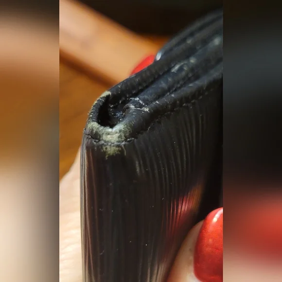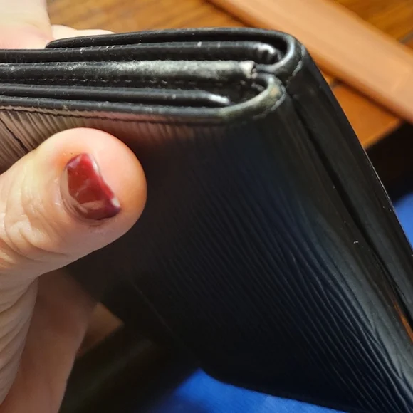 This is an authentic Epi leather LV. Its a beautiful wallet is in great pre-owned edition. There is some wear on the corners and peeling on the inside money slots. The leather looks amazing. Epi leather is for its durable and beauty. Buttons work well.