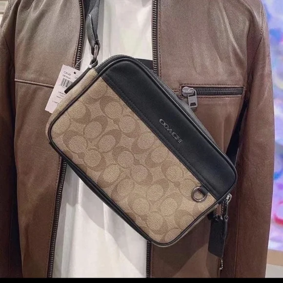 NWT Coach C4149 Men´s Graham Crossbody Signature Canvas & Leather KhakiProduct DetailsSignature coated canvas and smooth calf leatherInside multifunction pocketsDouble zip closure, fabric liningOutside slip pocketAdjustable strap with 25" drop for shoulder or crossbody wear9" (L) x 5 3/4" (H) x 2 3/4" (W)Style No. C4149