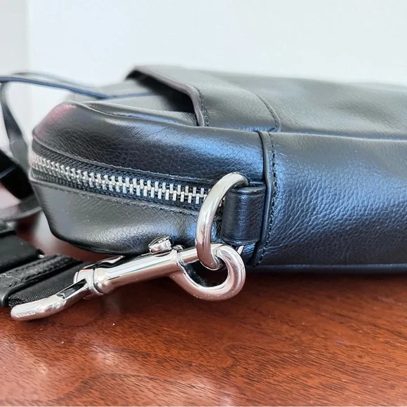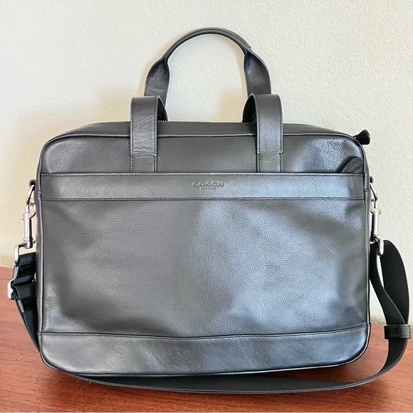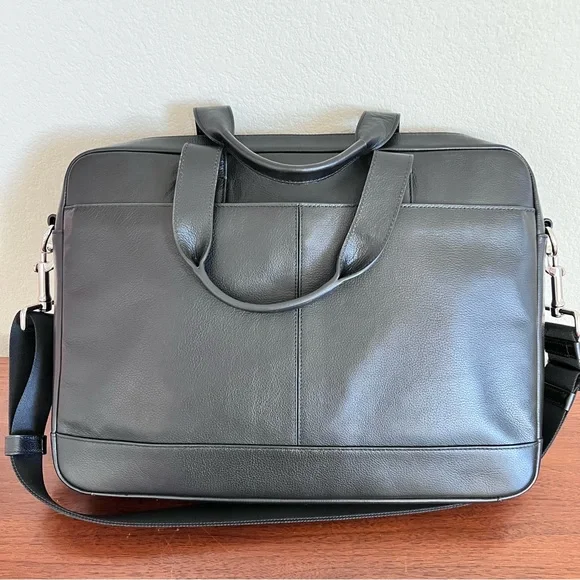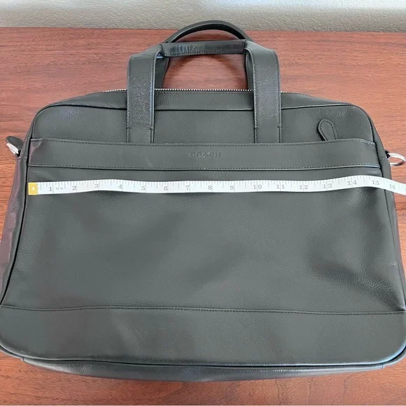 Pre-owned Coach Leather briefcase In like new condition with minimum wear and tear Please see pictures for details on wear and tearColor: BlackMeasurements: see pictures100% authentic! From smoke free & pet free environment.