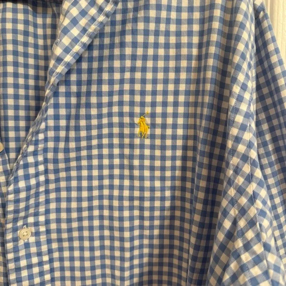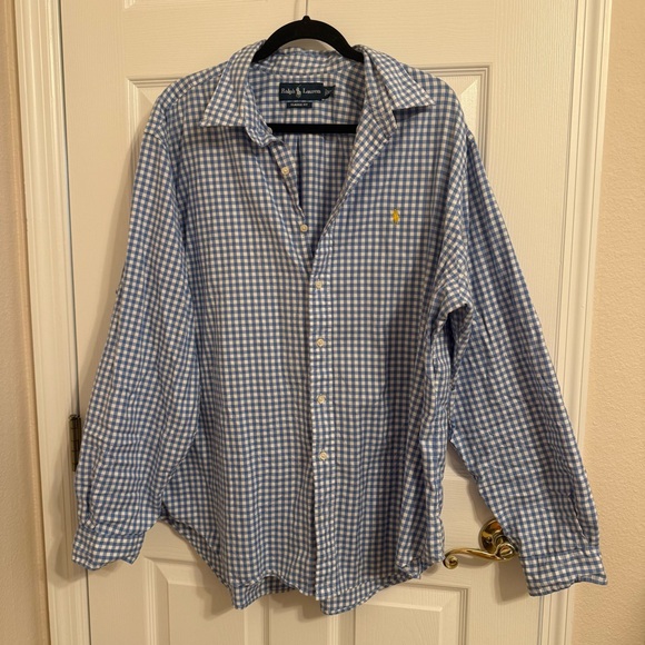 This Ralph Lauren shirt features a classic blue hue, perfect for casual outings. Crafted from lightweight fabric, it offers comfort and style with its timeless button-down design. Ideal for adding a touch of sophistication to your everyday look.