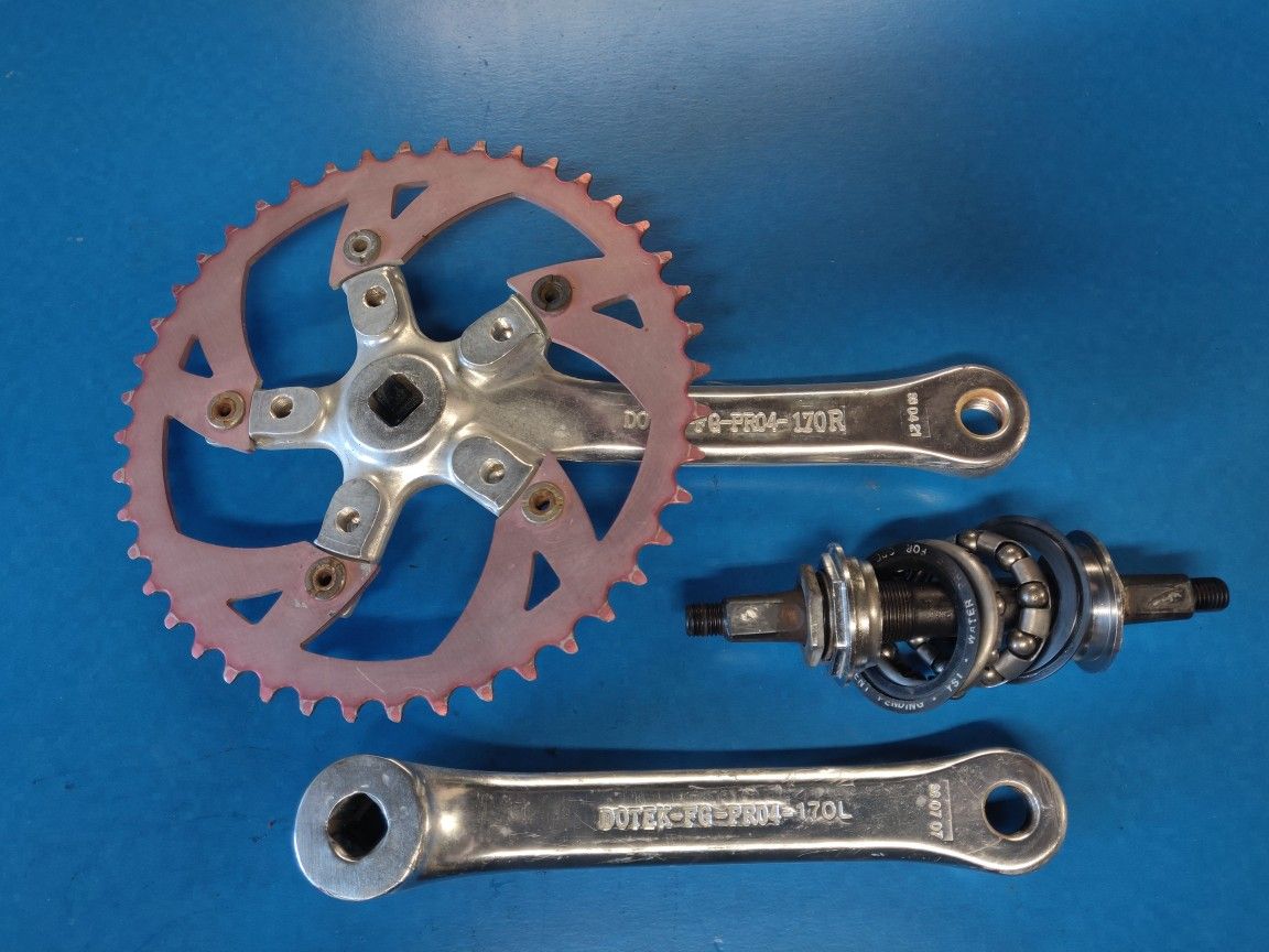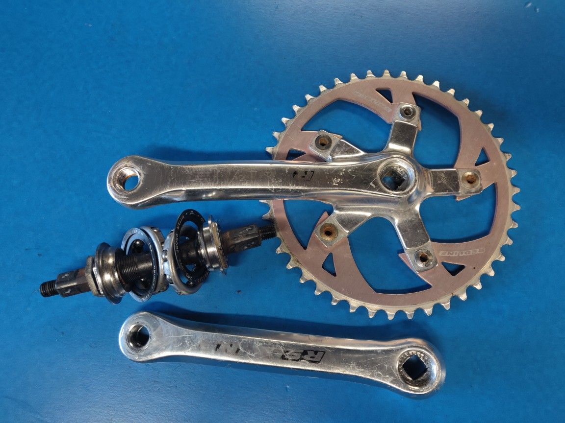 Stamped aluminum 3 pc cranks with 44T sprocket/chainring and original American bottom bracket. In great shape for you Old school/mid school build. Original end caps included!!