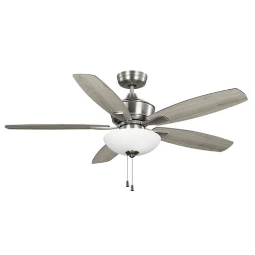 About This Product:Traditional style and dependable performance combine to produce the 52 in. Lindell indoor ceiling fan by Kathy Ireland Home. The beautiful brushed steel finish is complemented with 5 reversible blades in dark cherry and walnut finishes to easily blend with many of today´s decor trends. This versatile ceiling fan can be installed on a flat or angled ceiling and is compatible with remote controls or wall controls. The 3-speed reversible motor provides year-round comfort and is conveniently controlled via the included pull chains.