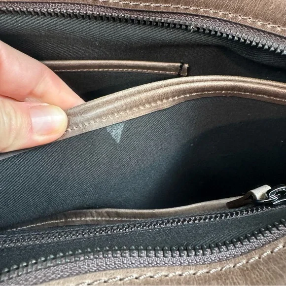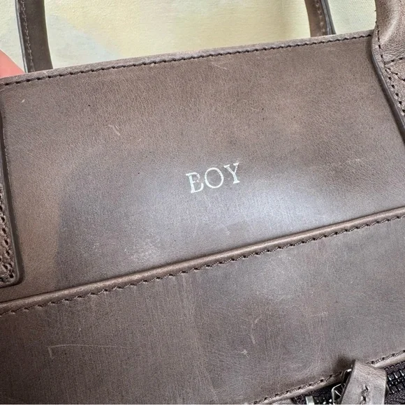 Mark & Graham Graham Leather Briefcase Bag Rustic Brown Scuffed Spot Read NWOTNew without tags item / open box - item ships without manufacturer packagingPlease note, there are several surface scuffs throughout - sides and bottom / some appear to be from manufacturer to give it a rustic look - others are from handlingThere is a small discoloration spot on one of the handles / feels a bit sticky - from adhesive holding top straps togetherThere is a small glue spot on the inside/lining of the bag - from manufacturingItem is monogrammed in front as picturedDimensions: 18”w x 6”d x 13”h