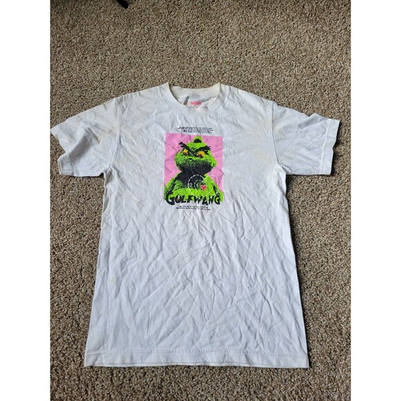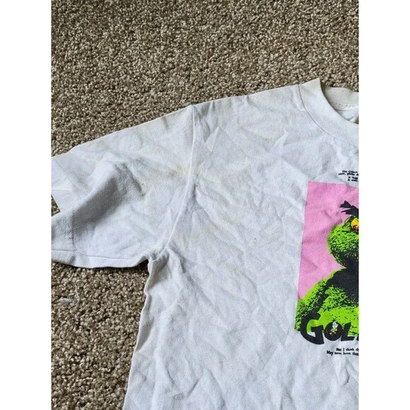Rough conditionNo rips Rare Grinch Golf White Lots of stains Pit to pit 18 inLength 27 in