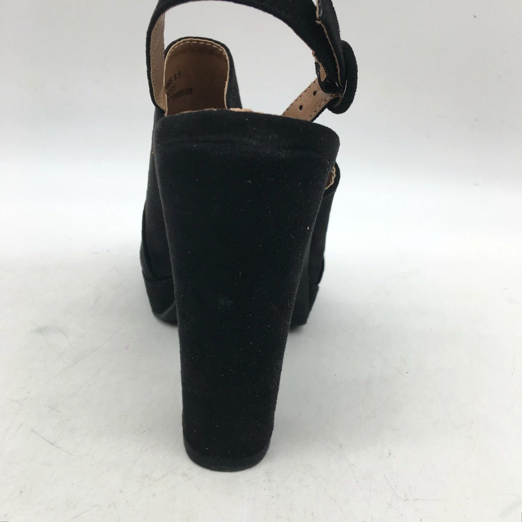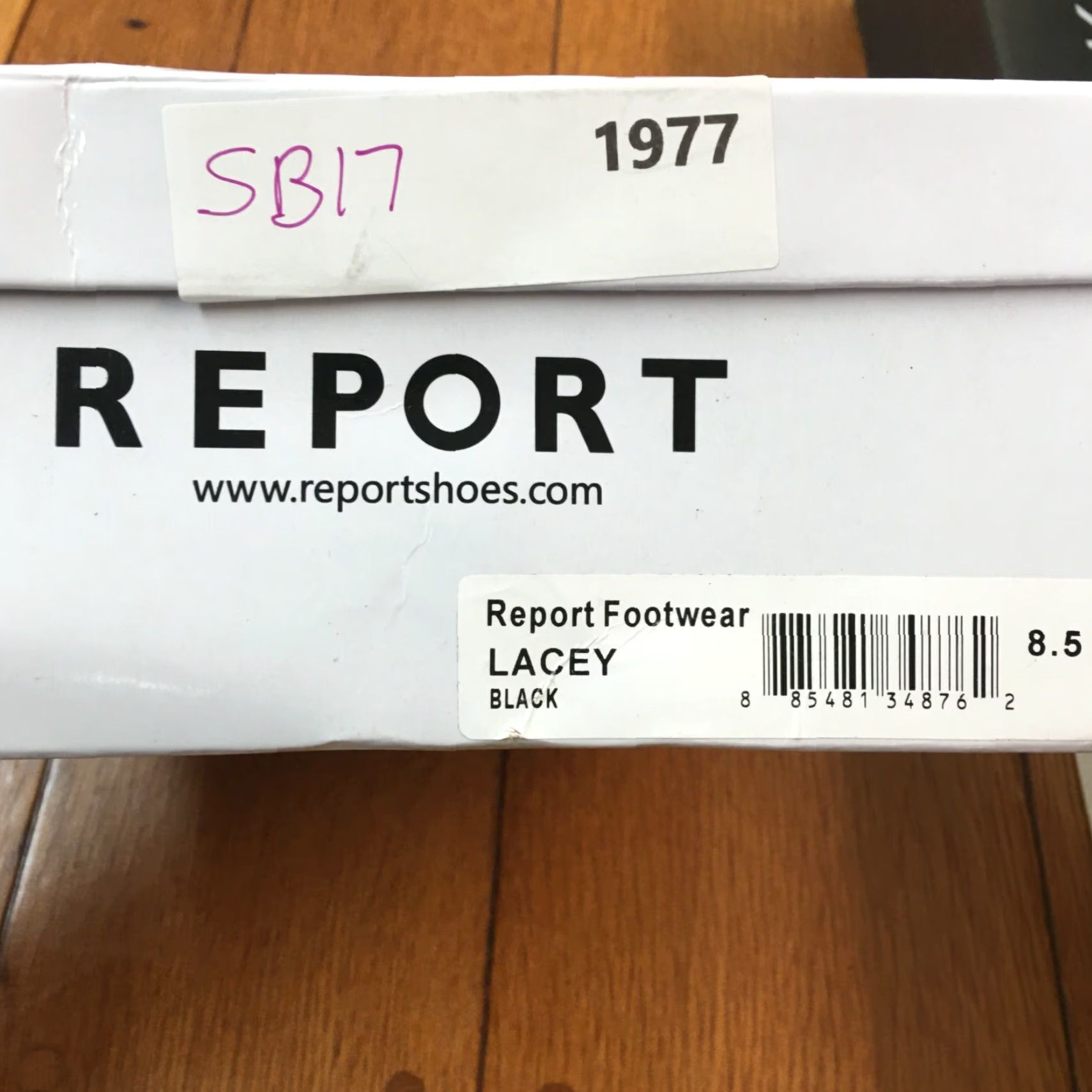 Brand: Report Department: Women´s Color: Black US Shoe Size: 8.5 Type: Heel Style: Slingback Pattern: Solid Toe Shape: Peep Toe Upper Material: Man Made Outsole Material: Man Made Insole Material: Man Made Heel Height: Ultra High (4 in & Higher) Closure: Buckle Condition: New With Box