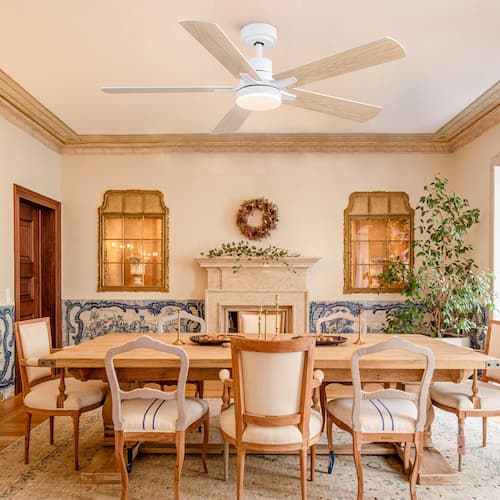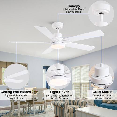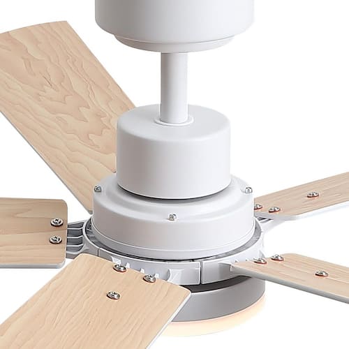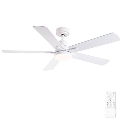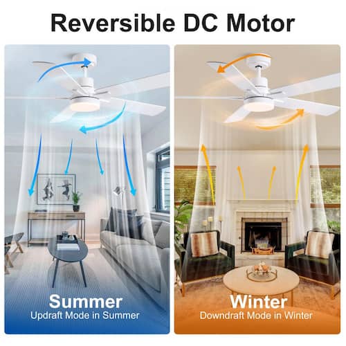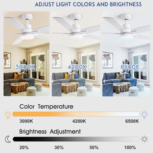 About This Product:The 52 in. ceiling fan offers an understated farmhouse look to any home. A light wood grain and white finish add a touch of modern country charm. Change up your look with the 5 reversible blades to either double finish. An integrated LED light kit with 3 selectable color temperatures and high-efficiency DC motor provides energy savings, low maintenance and long-lasting performance. Remote control included, you can control the fan and LED light switch, but also remote control all the functions.