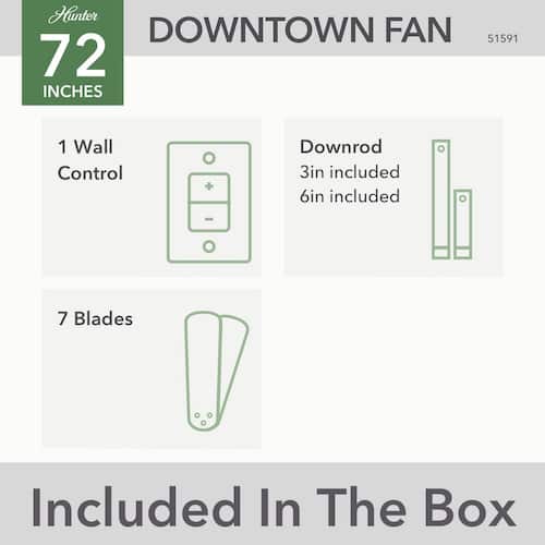 About This Product:Create a focal point. With its sleek finishes and spanning blades, the 72-inch Downtown ceiling fan commands attention in your large indoor and outdoor spaces. This ceiling fan combines modern and industrial styles to form an unforgettable fixture. Plus, its clean design makes it the perfect addition to all your spaces - regardless of their style.