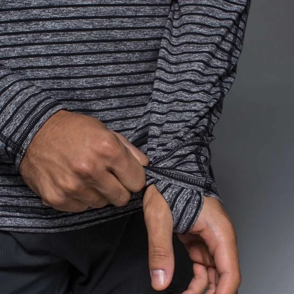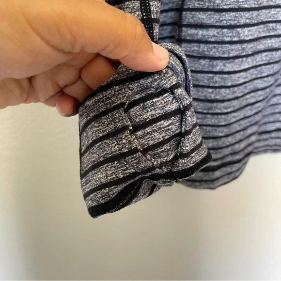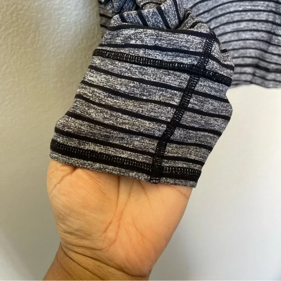 Lululemon Sweat Session 1/2 ZipRaven Stripe Black Heathered BlackHidden thumb holes .Size:MNo material tagApprox. measurements Pit to Pit: 20”Length:26” shoulder to hemline Conditions : Preowned EUC