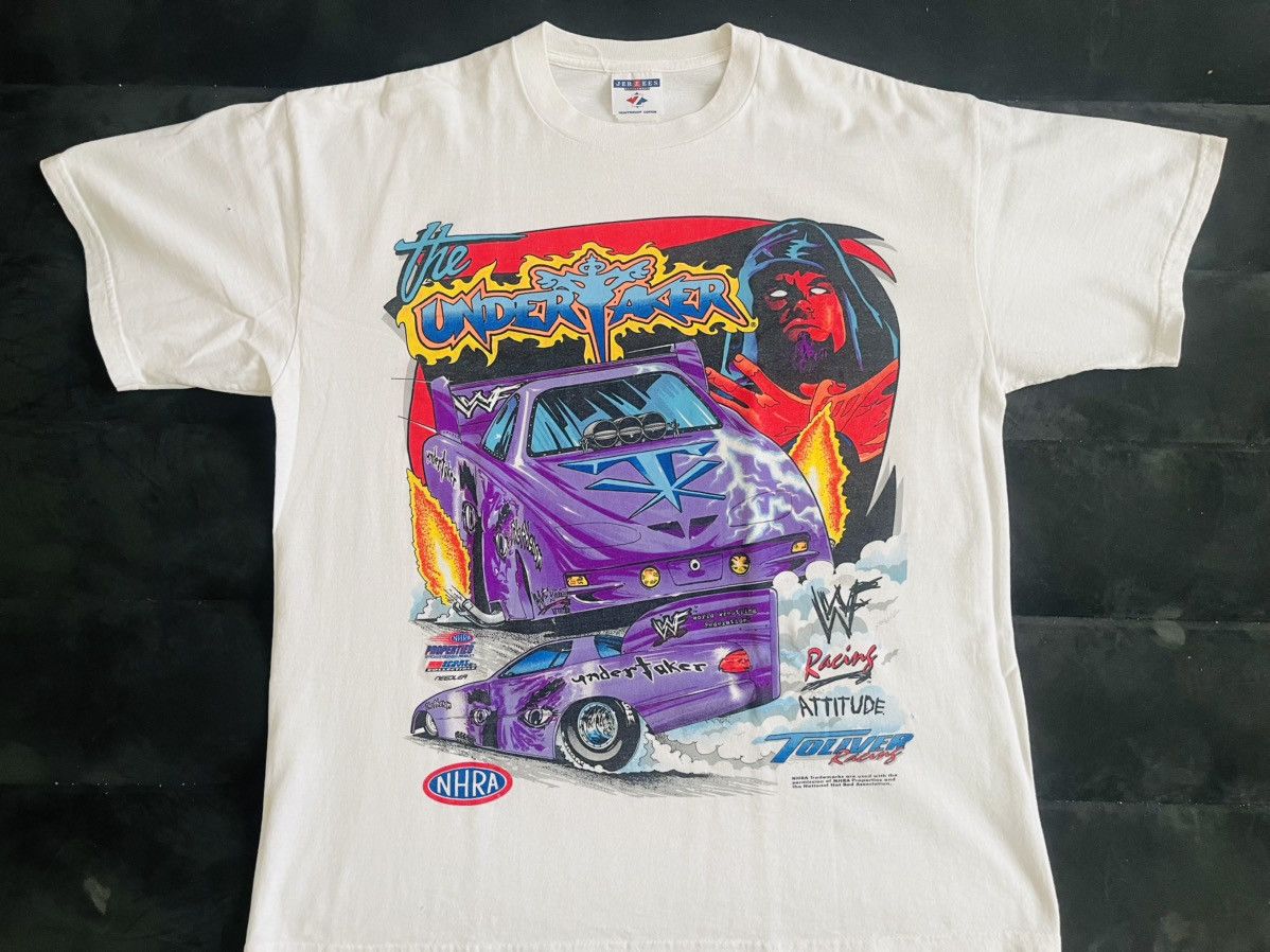 rare vintage undertaker nascar cartoon/anime shirt. dated 1999 licensed to titans. sz large.