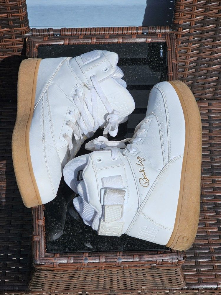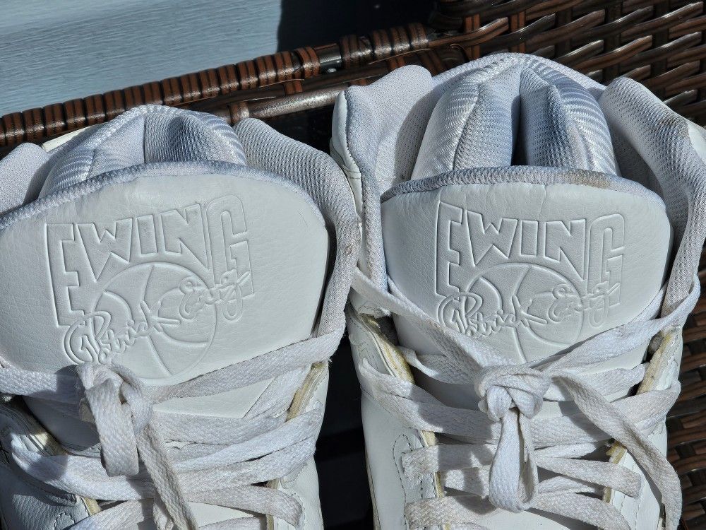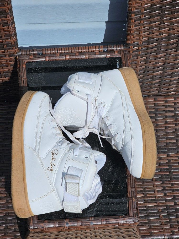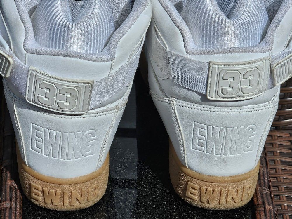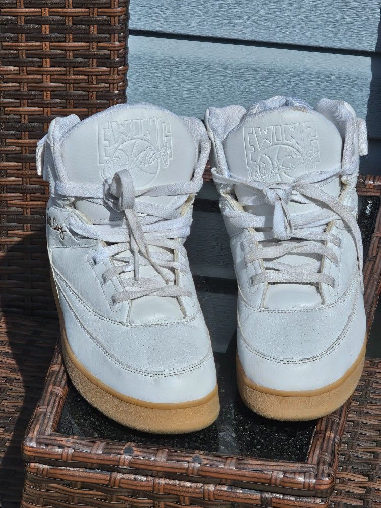 Embrace the retro vibe with the Patrick Ewing Athletics 33 HI OG, a harmonious blend of classic style and modern comfort. These sneakers feature a crisp white base complemented by gum outsoles, creating a striking visual appeal that stands out in any collection. Ideal for those who appreciate a timeless aesthetic, these shoes are a nod to basketball heritage with a street-ready edge. Current Head Coach of Georgetown University men´s basketball team.Pre Owned No Box Please review pictures for description and wear.Crafted for the discerning gentleman, the size 11.5 athletic sneakers are designed to provide both a stylish look and a snug fit. The Ewing Athletics brand is synonymous with quality and durability, ensuring that these sneakers are not only eye-catching but also built to last. Whether for casual wear or for making a statement on the court, these kicks are poised to elevate any outfit.
