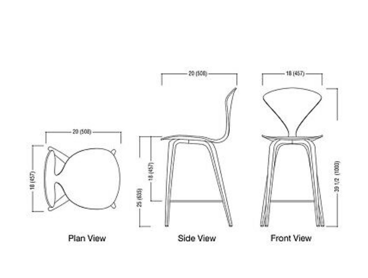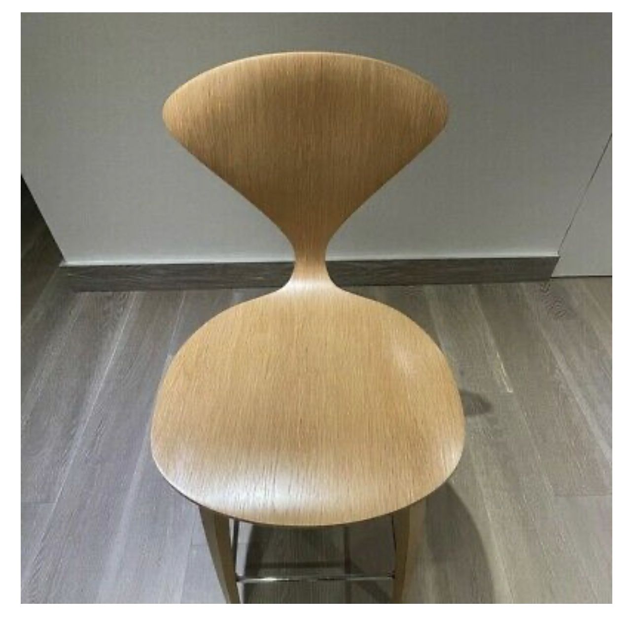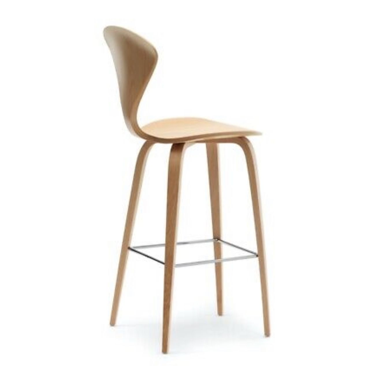 Cherner Wood Leg Stool by Norman ChernerDesign: Norman ChernerCounter 25-in. Item: W 18", H 38.5", D 21"A completely water-based veneer finishing system is used on all Cherner products yielding greater color consistency and fewer VOCsHand assembled from woods collected from sustainably managed forestsCounter Top HeightWood: White Oak - Rift CutSteel components are made with 100% recyclable steel with 25% recycled contentManufactured In: USAOriginal Price $749 each, Set of 4 $2,996 EACH SALES FOR $400