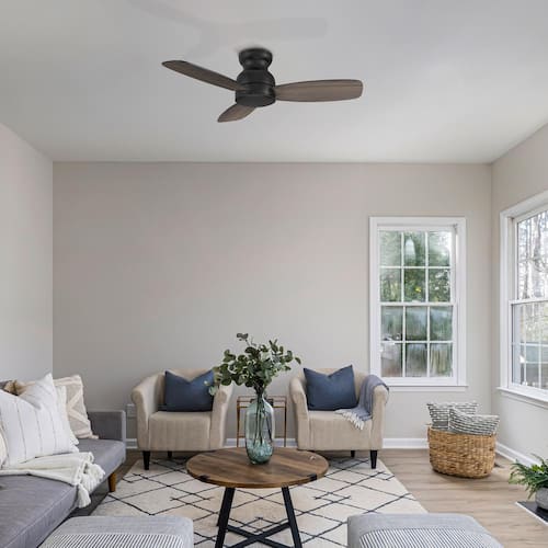 About This Product:Compact and commanding, this Osborn 44 in. black ceiling fan offers a simple and elegant design for even the most limited spaces. It is available in an array of colors and wood finishes to complement any decor trend. This ceiling fan without light effortlessly complements a variety of decors. The fan features burnished metal exterior black and complementing blades for a modern addition to any home decor.