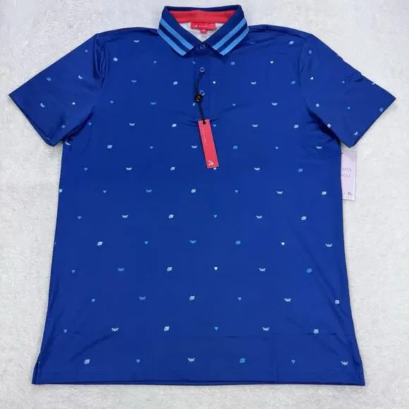 Add a playful yet sophisticated touch to your wardrobe with the Redvanly Langham Polo Shirt. Featuring a unique Blue Cats & Bees print, this shirt combines fun with high-performance functionality. Designed with moisture-wicking and stretch technology, it offers a comfortable, flexible fit, perfect for both on and off the course. Whether you´re hitting the links or enjoying a casual outing, this polo keeps you cool and stylish all day long.Key Features: * Size: 2XL * Color: Blue with Cats & Bees print * Fabric: Wicking stretch technology for comfort and flexibility * Style: Classic polo with modern design * Condition: Brand new with tags (NWT) * MSRP: $105Bring a touch of personality to your wardrobe with this high-performance, stylish polo from Redvanly.Pit To Pit: 23"Length: 32"
