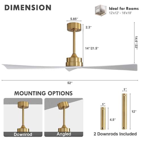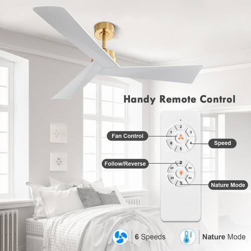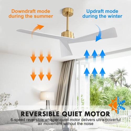 About This Product:The 52 in. indoor ceiling fan adopts 3-pieces of soild wood fan blades. It is made of sturdy construction anddurable materials that wil not deform during rotation, creating a simple interior home style. This fan features 2-way rotation tosatisfy your different needs all year. The fan´s 6 speeds can be controlled by the included remote.