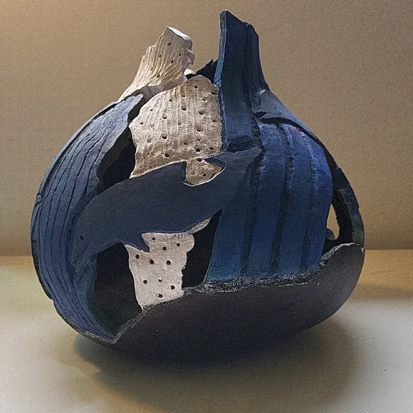 Artist signed dolphin gourd. Painted and carved